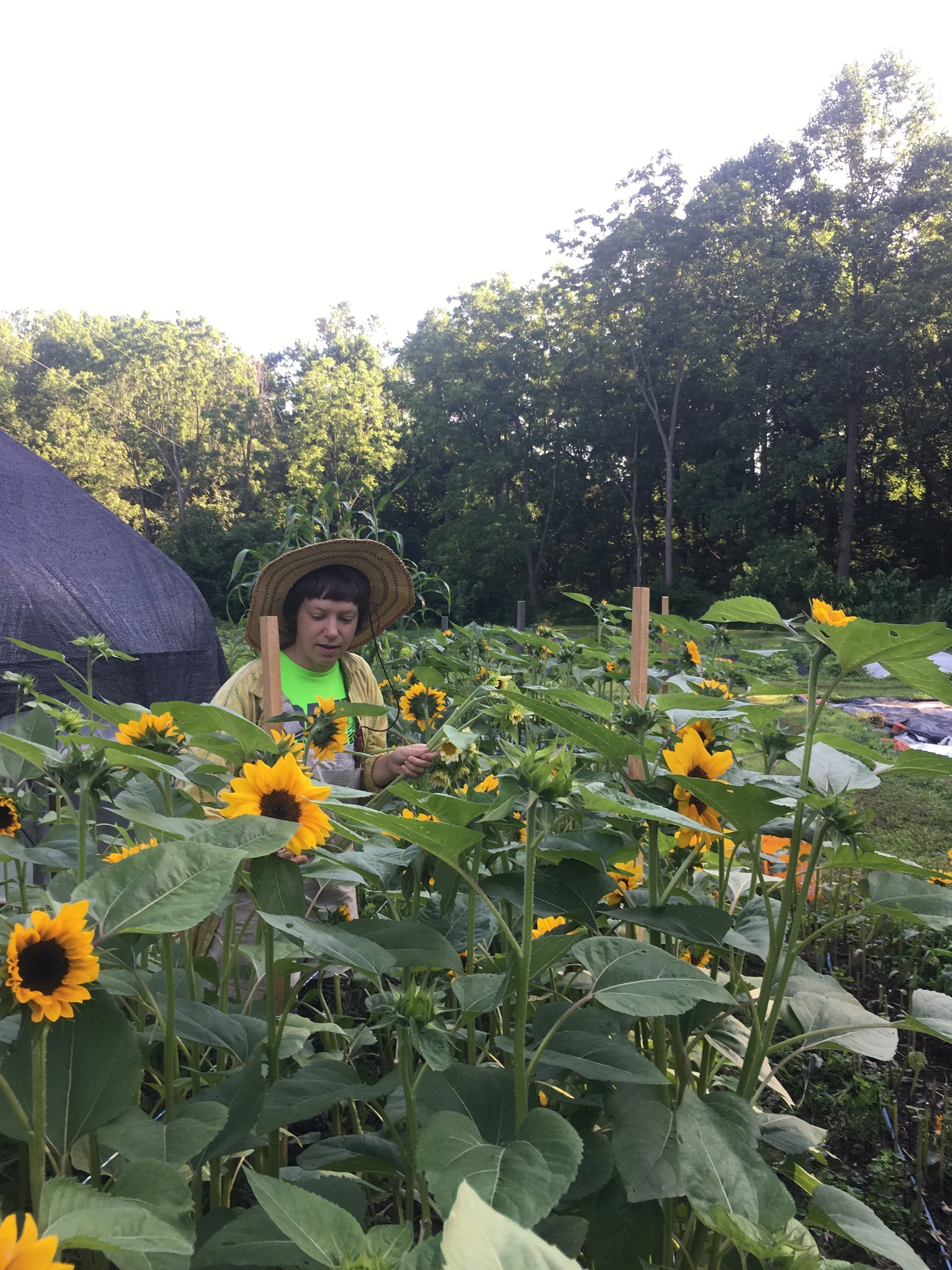 We hope that you’re staying cool during this hot week! Summer has certainly arrived. Here on the farm, that means that we’re pulling our cool flowers, spreading cover crop, weeding, and rapidly harvesting our summer crops.