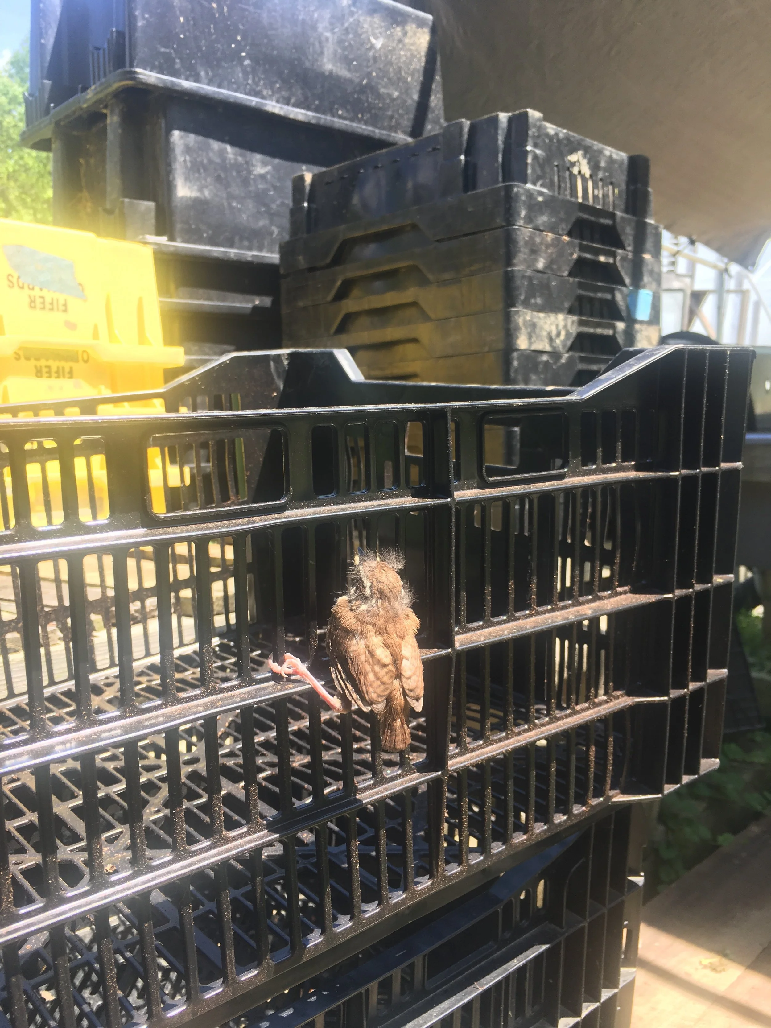 We’ve been seeing lots of fledgling birds on the farm recently! Pictured here is one of a family that’s made a home in the birdhouse next to our greenhouse. As they learn to fly, their sweet mama is never far behind.