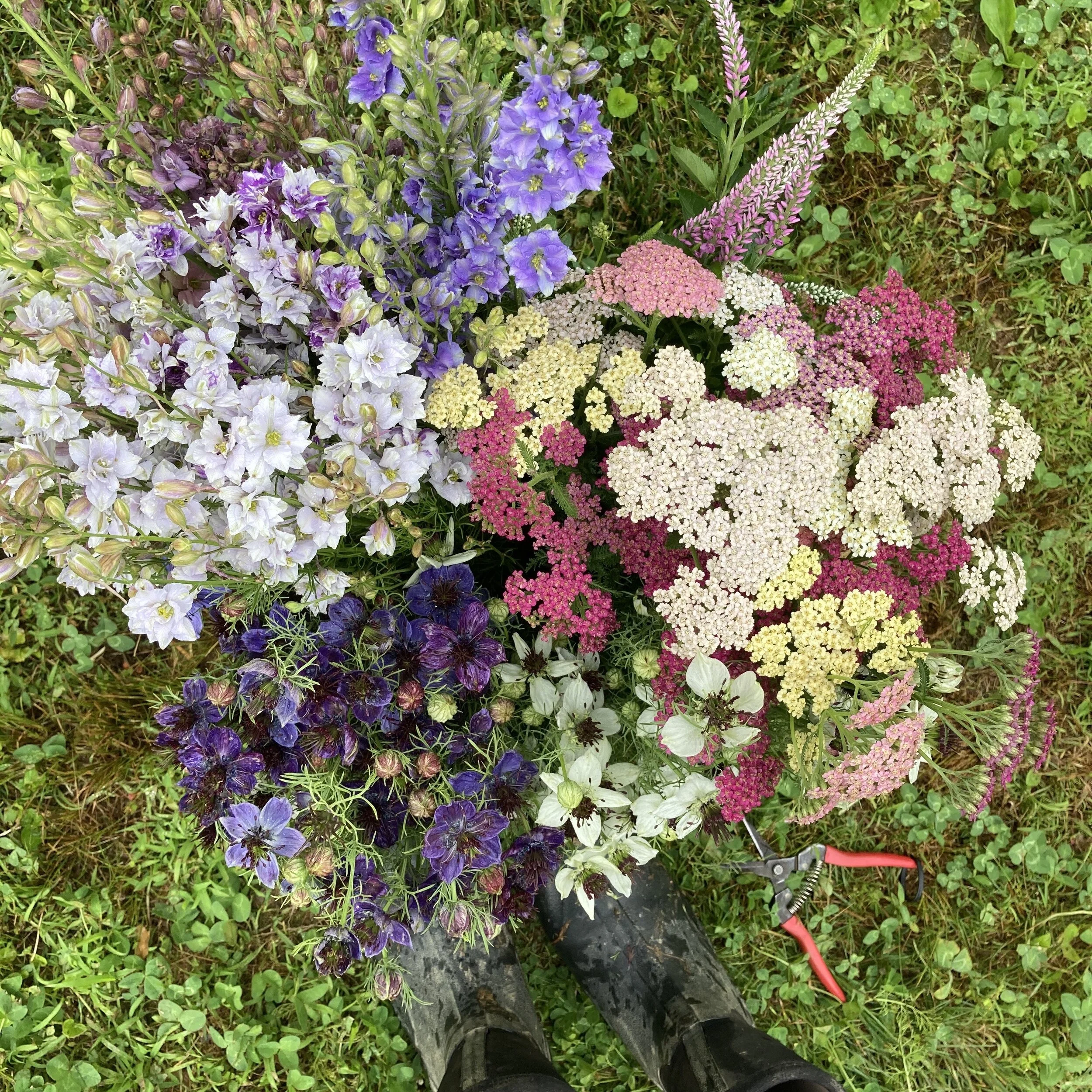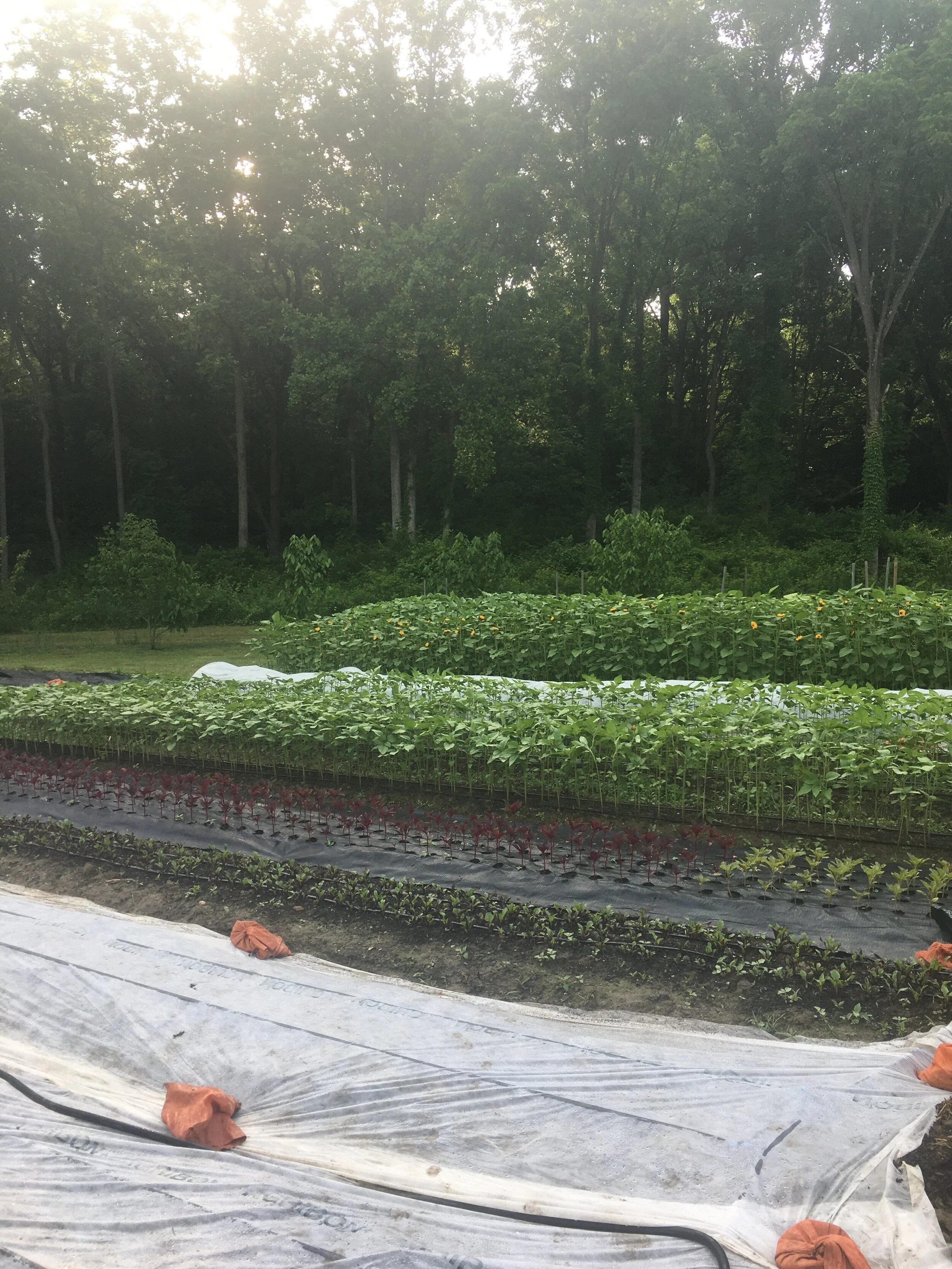We’ve immensely enjoyed the cooler, overcast days this week. The rush of summer plantings is beginning to wind down, and after a big push next week, we hope to be caught up on planting and able to focus on maintenance and harvesting. Summertime means non-stop harvesting on top of all of the usual farm tasks. We’re looking forward to it, though! We’ve got more tomatoes planted than ever before, we’re still planting later successions of cucumbers and squash, and our summer flowers are sizing up in the fields. Every day there’s something new on the farm! It’s such an exciting time of year.