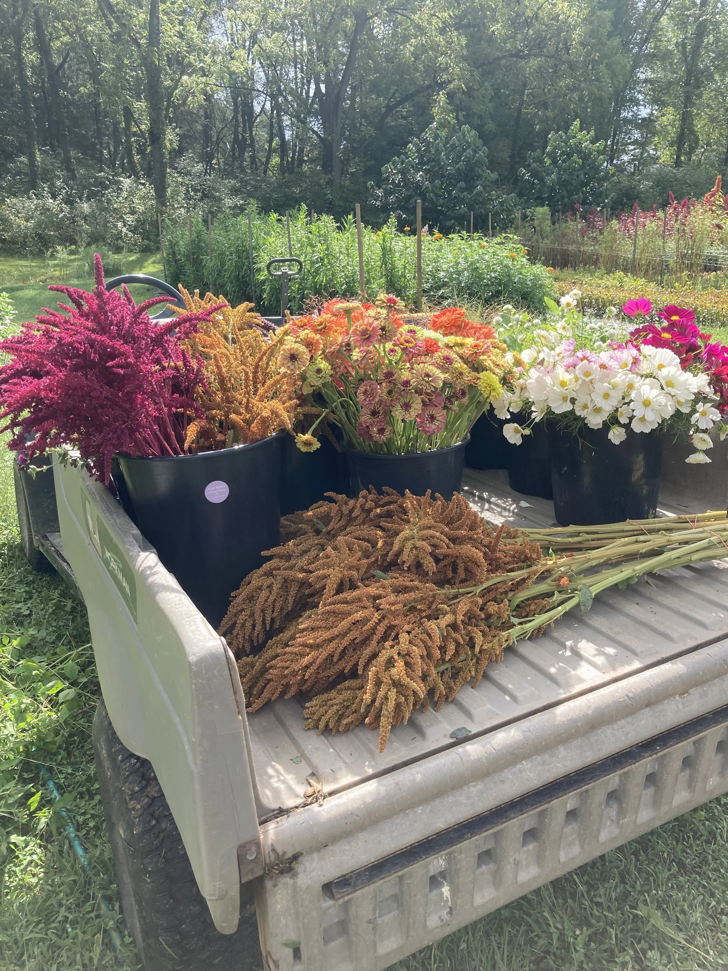As pawpaw season continues, we’re staying very busy on the farm. The pawpaw harvest consumes a significant chunk of time each day, and our flower harvests are quite large these days. Two big daily harvests combined make it challenging to get other work done. We’re powering through, though and the pawpaw season won’t last too much longer. Once it ends we will catch up on planting and crop maintenance. For now, we’ll take it one day at a time. In the next few weeks we’re looking forward to seeing the fields full of cool flower seedlings, ready for a long winter!