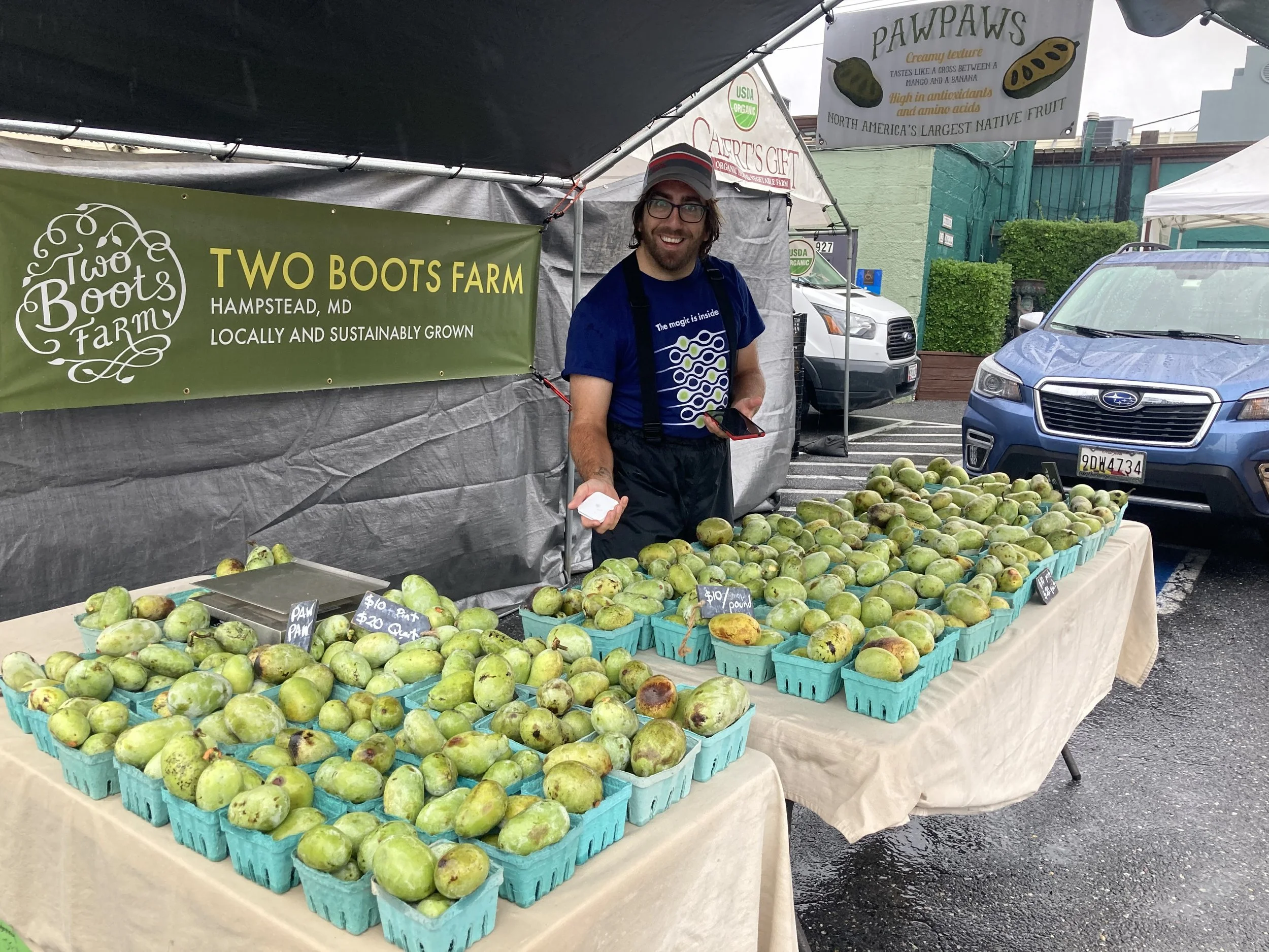 Peter, ready to sell pawpaws at Takoma Park this past weekend.