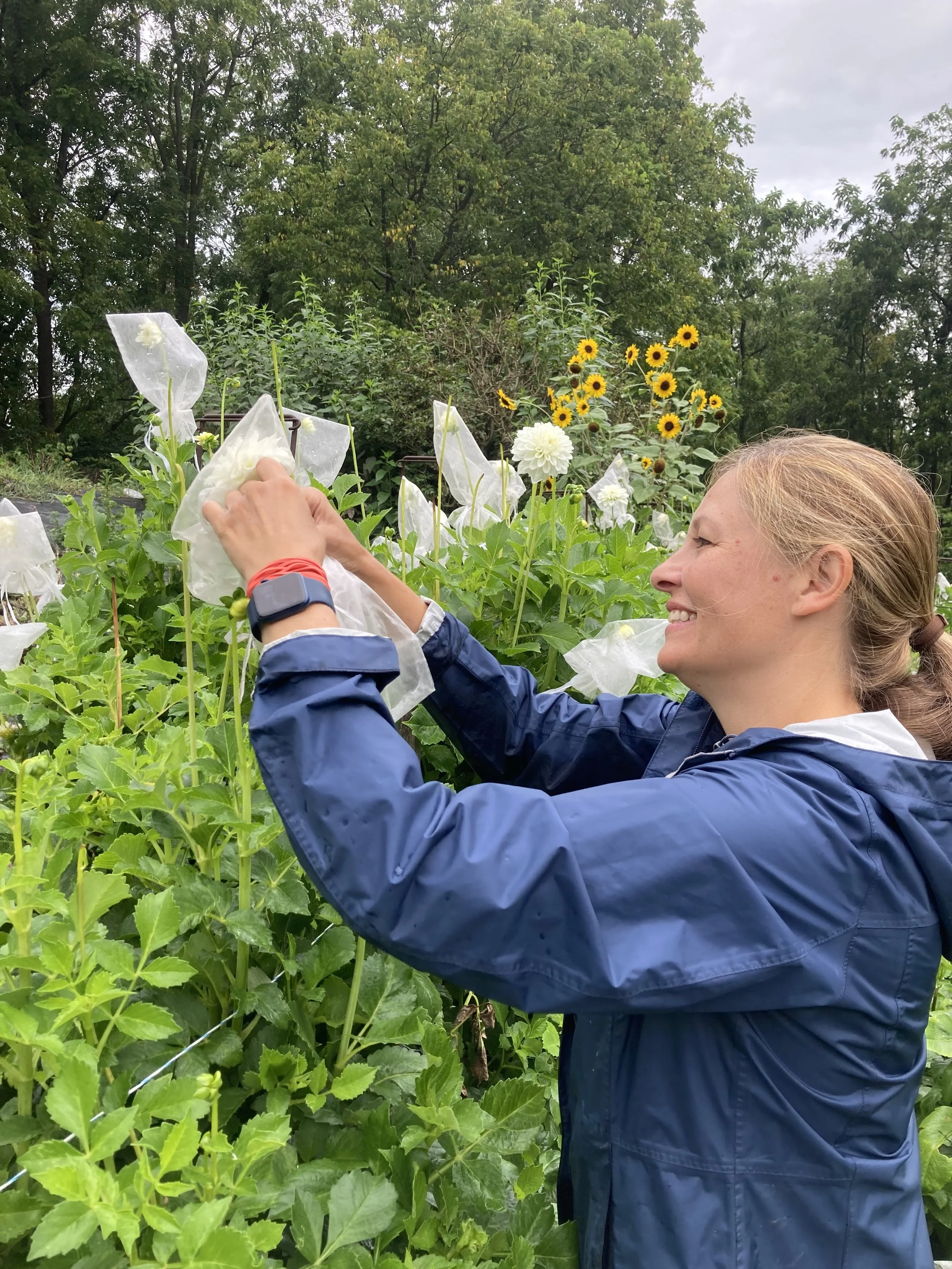 I hope that you have had the opportunity to enjoy this week’s gorgeous weather. We’re sure loving it on the farm! It appears as though next week’s highs will be back in the 90’s, so we’re savoring every moment of these breezy days while we can. Hopefully next week’s heat wave will be the last hurrah of the summer, and then we can ease into Autumn weather. As I’m sure you’re aware, September is all about dahlias and pawpaws for us, and we’re getting ready for the onslaught of our busiest harvest season. Sadly, looking as though this year’s pawpaw crop will be a small one, thanks in part to the big storm that rolled through in August.