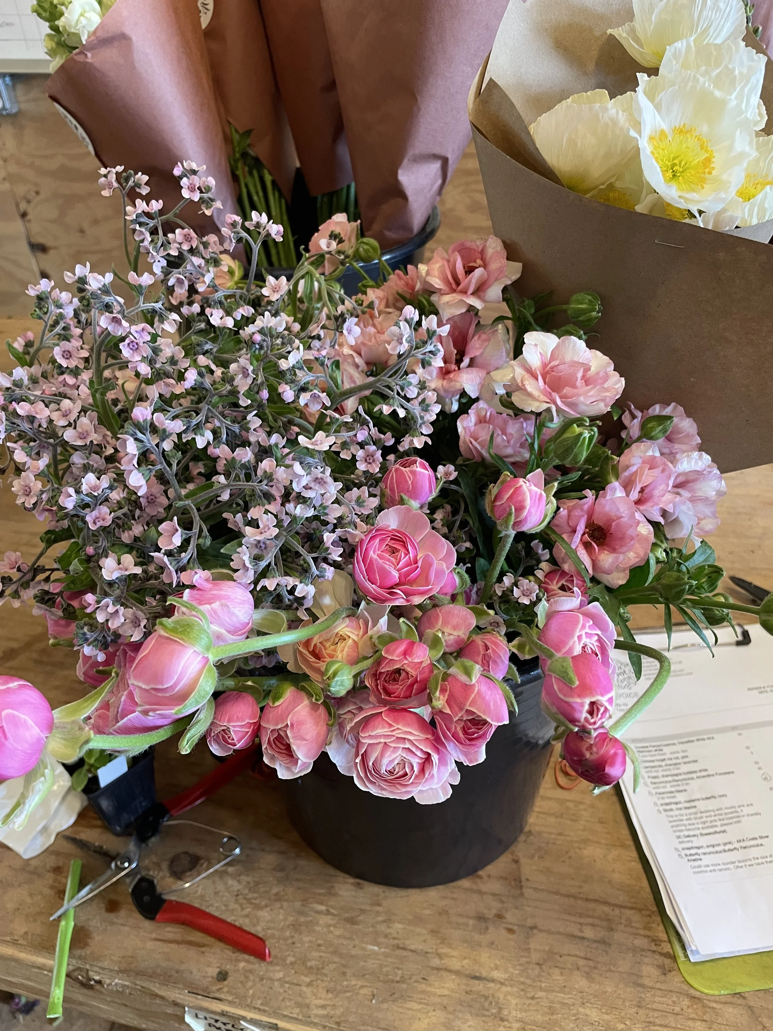 A very pink florist order. I love seeing the combinations of color and texture that our florists come up with each week.