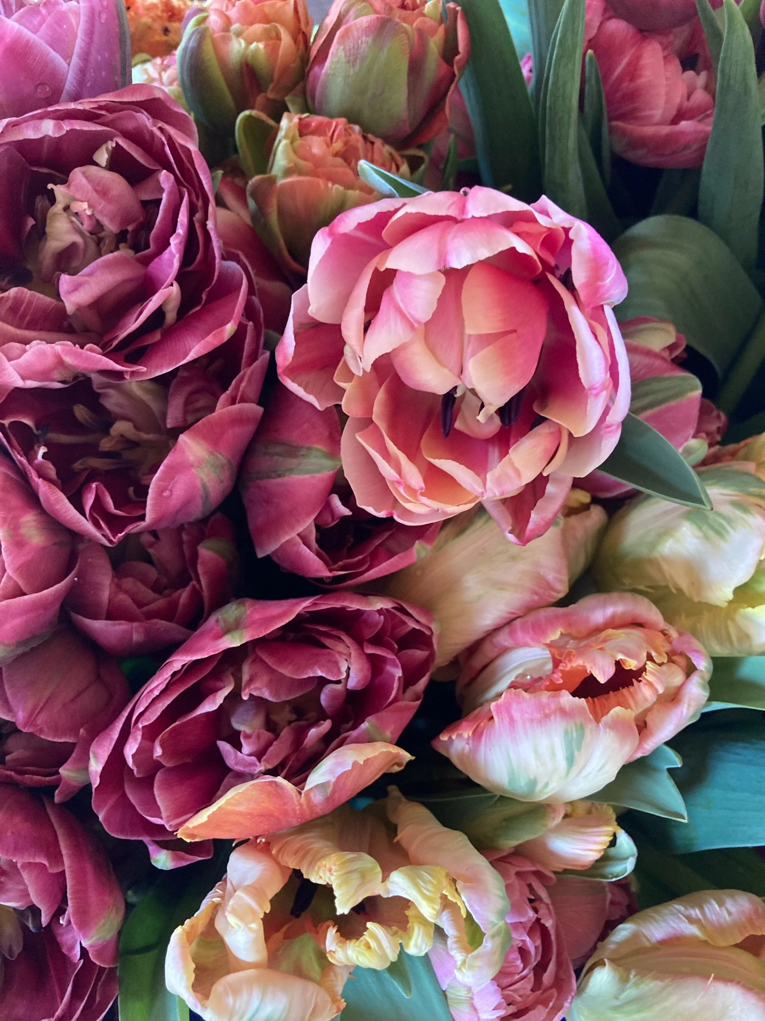 Our full crew started work on Monday and we’ve had a busy and productive week. We’ve enjoyed the warm weather, and the plants seem quite happy with it as well! We’re finally harvesting ranunculus and butterfly ranunculus again, and we can barely keep up with the twice daily tulip harvest.