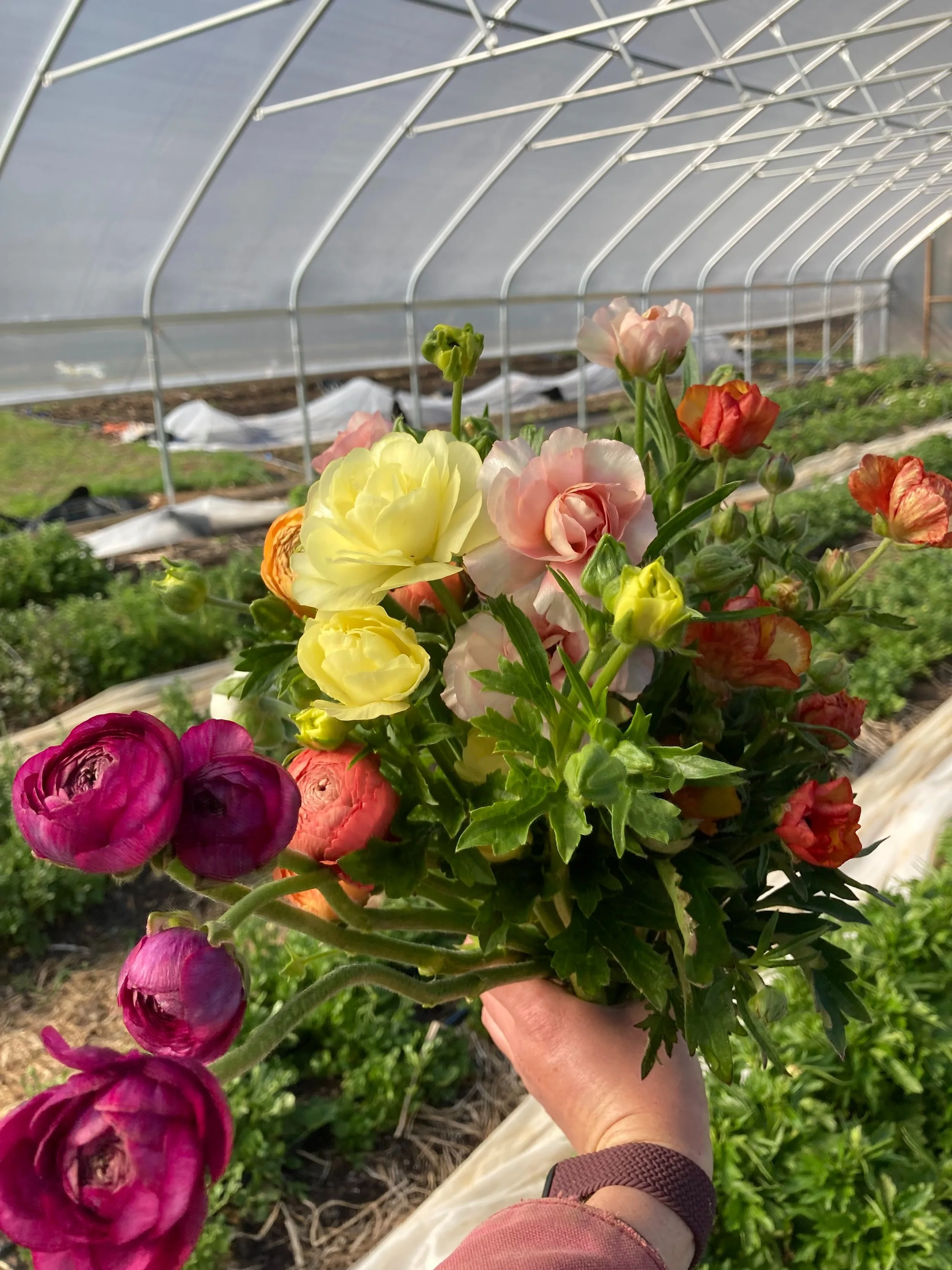 Ranunculus and butterfly ranunculus have arrived! We’ll definitely have them available when we return to market.