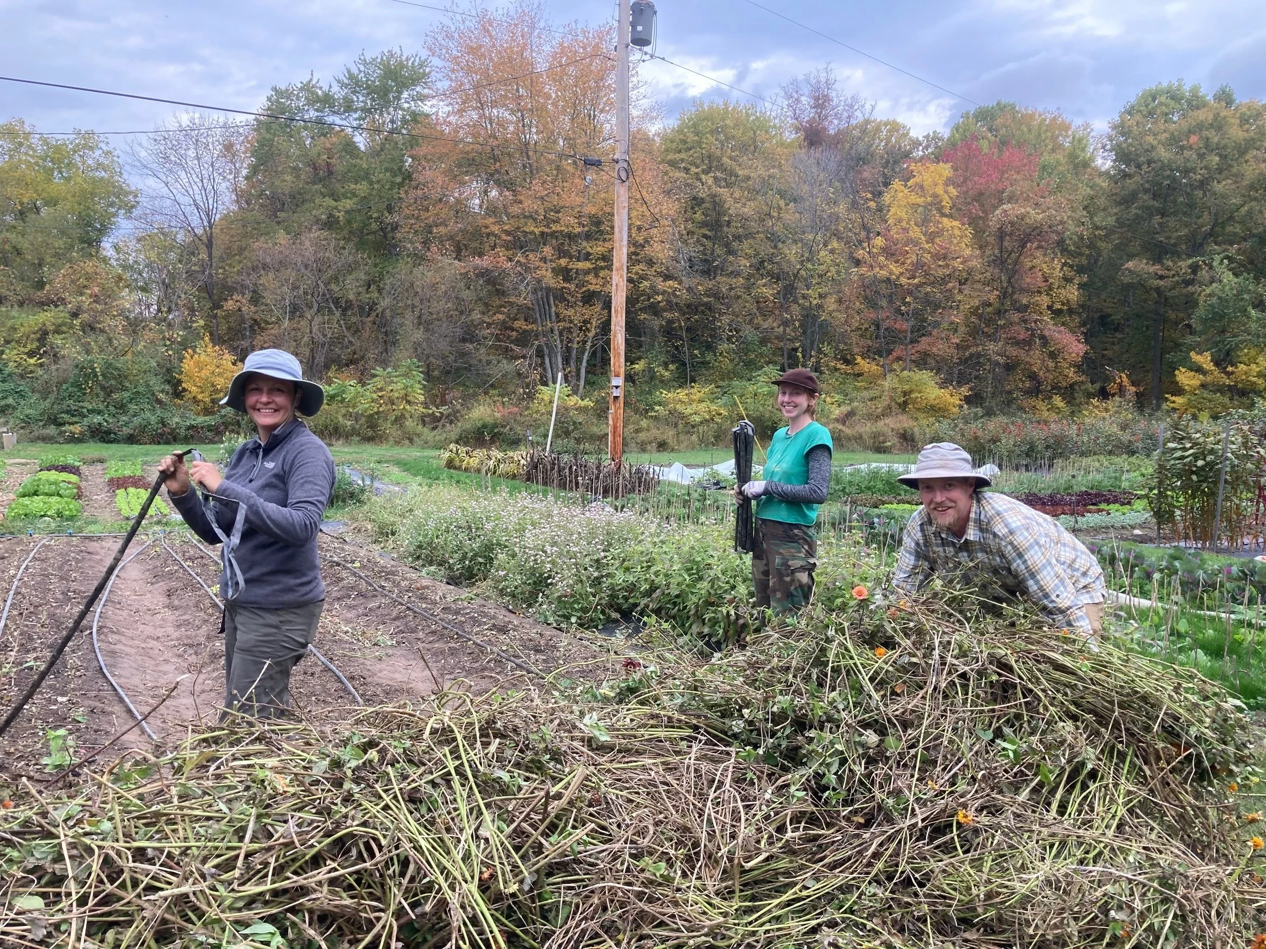 Cleanup time! Karen, Meg, and Dave took out all of the zinnias on Monday, kicking off a big week of farm cleanup.